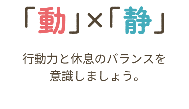 しかし、火が強すぎると燃え尽きてしまうように、「動く」だけでなく「整える」ことも意識することがポイントです。