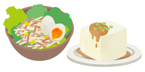 • サラダや温野菜、きのこ類、海藻を取り入れたおかずを1品足す