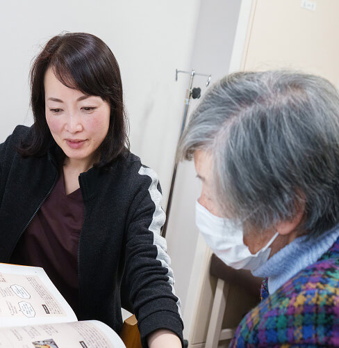 さらに外来への通院が困難になった患者様には、訪問診療での継続診療をご相談、ご案内させていただいております。また、看護師や管理栄養士、相談員などによって、患者様の生活に係る様々な相談もお受けしています。