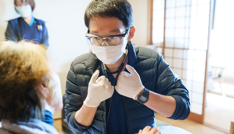 医師には、病院とは異なる幅広い疾患に対応できる診療力や、限られた環境での診断・治療方法、また患者様・ご家族との対話力や、傾聴力、終末期ケアの説明力などのスキルが求められます。