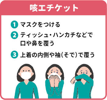 政府広報オンライン『インフルエンザの感染を防ぐポイント「手洗い」「マスク着用」「咳(せき)エチケット」』を参考に作成